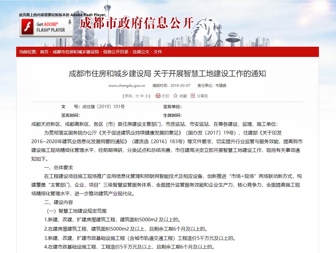 成都市住房和城乡建设局发布关于智慧工地建设要求