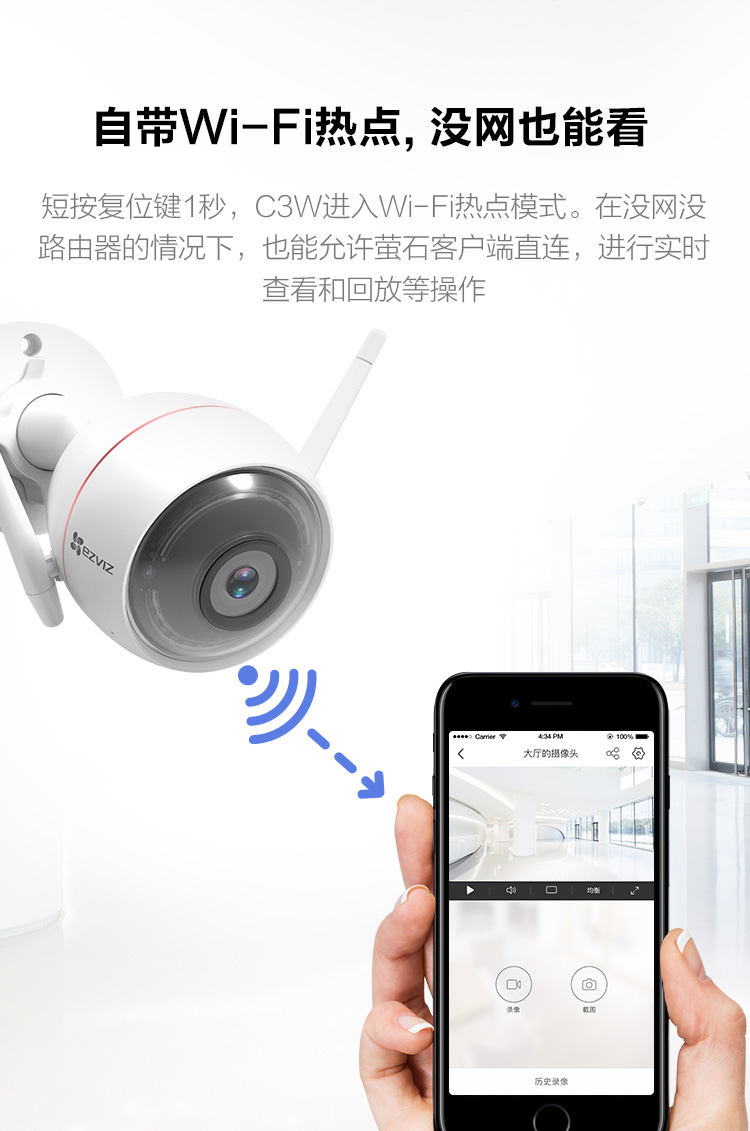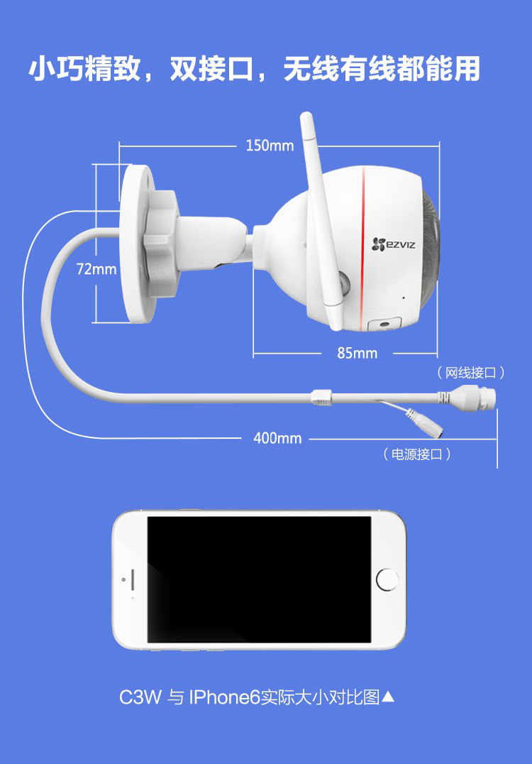 海康萤石无线wifi高清1080P壁挂式夜视智能安防家用报警监控摄像机