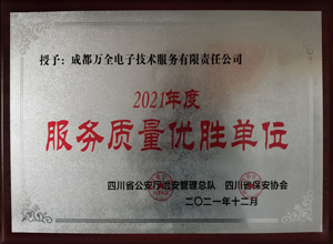 热烈庆祝成都万全电子荣获2021年度“服务质量优胜单位”称号