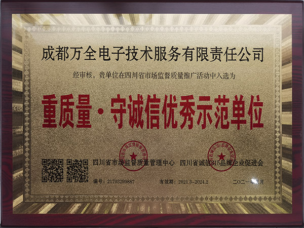 热烈庆祝成都万全电子荣获"重质量·守诚信优秀示范单位"称号