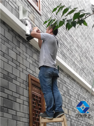 施工过程 :考虑到室内房间众多,拐角较多,存在有一定的安全隐患,加之屋顶花园有通向室内的楼道,也须要对屋顶花园进行监控安装起到随时监控的作用;室内将是未来实际物品展览区域,有极大的防盗需求,综合实际防盗需求和房屋结构情况,成都万全电子选择了室内外同步安装联网防盗系统以及视频监控系统的方案,并于安装当天全部完工经双方验收合格后正式交付客户使用